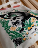 Sie besteht aus 100% Bio-Baumwolle. Wir freuen uns, dass Sie mit der Tasche unsere Botschaft weitertragen.