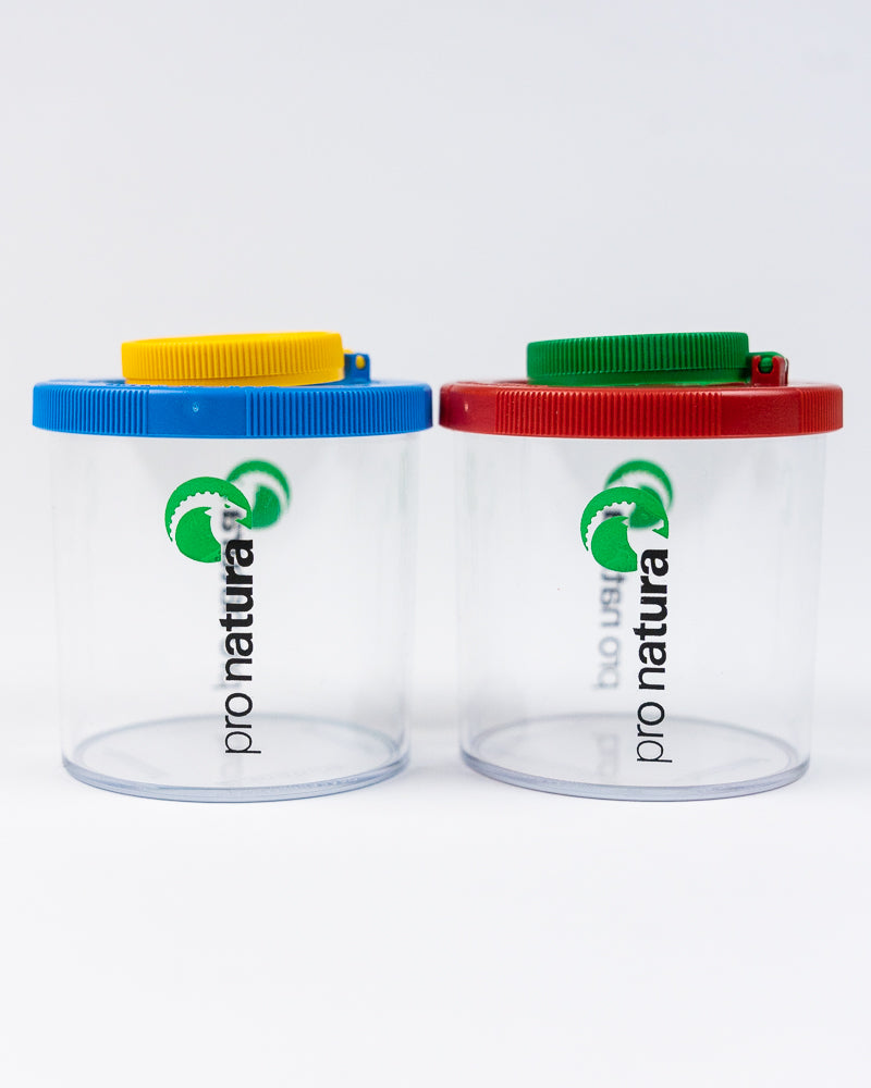 Die Becherlupe hat kleine Luftlöcher im Deckel. So müssen Sie sich bei sorgsamem Umgang keine Sorgen machen um die kurzfristig eingeschlossenen Tiere. Die Linsen sind aus unzerbrechlichem Acryl-Harz. Wir bieten die Becherlupen nur im Doppelpack an - 1x rot und 1x blau.