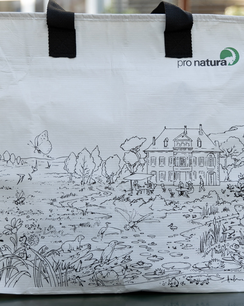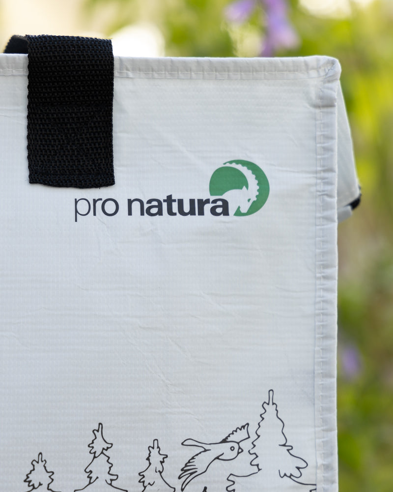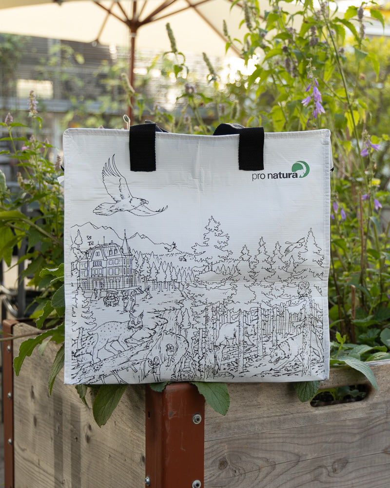 Sei es für den Grosseinkauf oder das Picknick in der Natur - unsere Tasche ist vielseitig einsetzbar. Dank des Reissverschlusses bleibt der Inhalt auch beim holprigen Transport im Velo-Körbli in der Tasche. Die Illustration zeigt die vielfältige Natur der Schweiz sowie typische Vertreter der Lebensräume. Und wer genauer hinschaut, kann die Pro Natura Zentren Champ-Pittet und Aletsch erkennen.