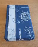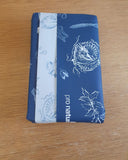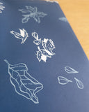 eine Seite dunkelblaue Illustration auf hellem Grund, andere Seite hellblaue und weisse Illustration auf dunklem Grund