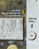 Dieser Schieber zeigt, welche krabbelnden, kriechenden und wuselnden Wesen sich im Boden tummeln, ob ganz ohne, mit 4, 6, 8 oder noch mehr Beinen. Ein Massstab auf der Seite kann helfen, die entdeckten Tierchen zu bestimmen.