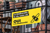 Die Fahne ist 100 x 50cm und besteht aus recyceltem Polyester.